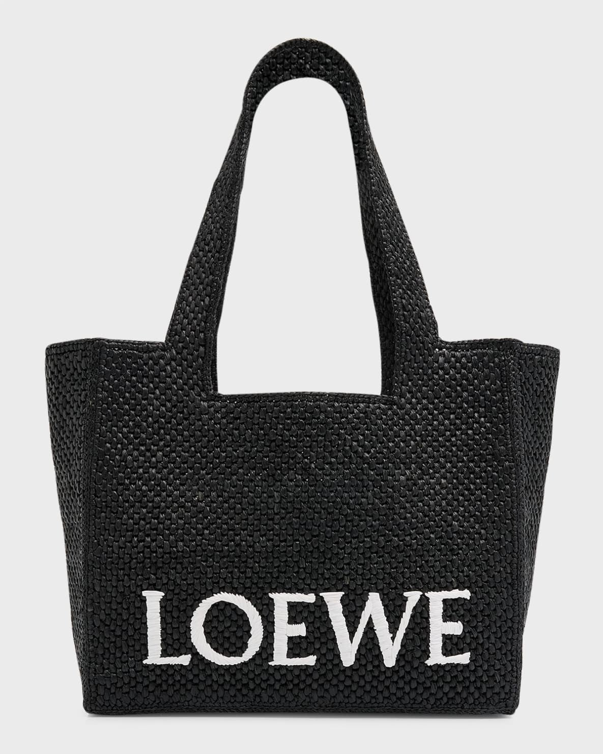 Loewe raffia, leather, and viscose tote bag with logo accent